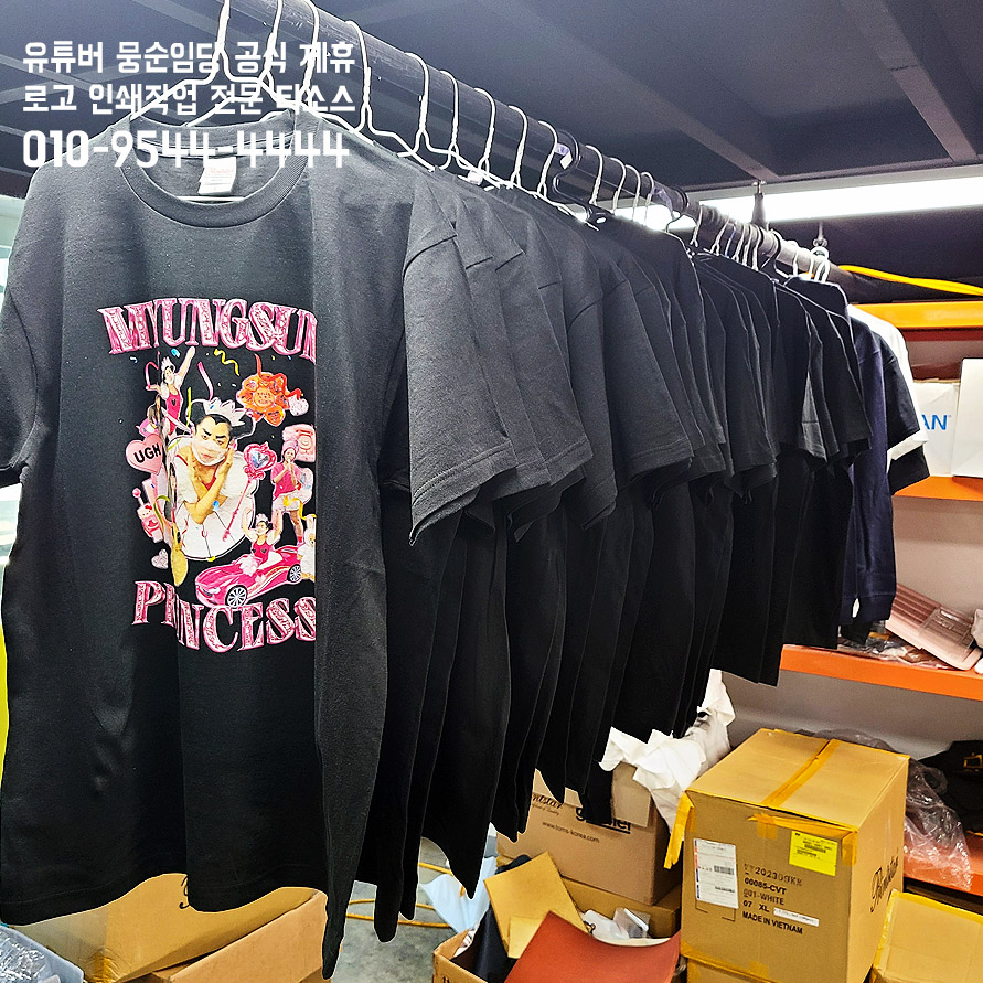 유튜버 뭉순임당 단체티 로고인쇄 작업 사례