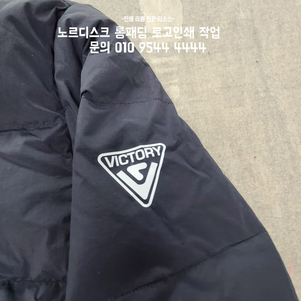 이렇게 티소스의 노르디스크 패딩 로고인쇄 작업을 보셨는데요